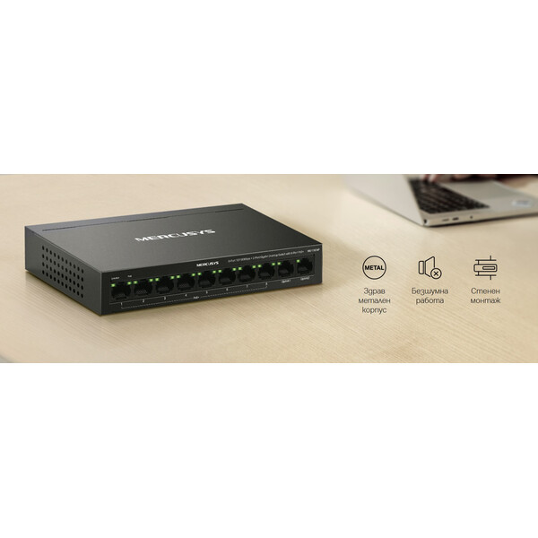 10-портов Gigabit Desktop комутатор с 8-Port PoE+ Mercusys MS110CMP