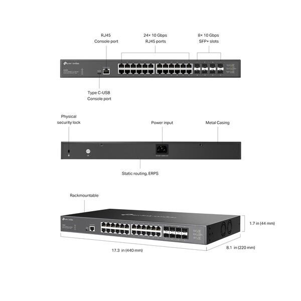 24-портов 10GBASE-T L2+ управляем комутатор с 8 10GE SFP+ слота TP-Link Omada SX3832