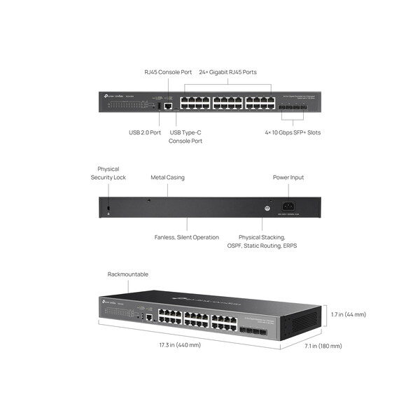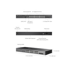 Omada SG5428X е надежден L3 комутатор от начално ниво, пригоден за нивото на достъп, с L3 маршрутизиране, бързи 10 Gbps кабелни скорости и опции за стекиране. Той включва 24× Gigabit RJ45 порта, 4× 10 Gbps SFP+ слота, възможност за физическо стекиране и централизирано управление. Интегриран със силна сигурност и обширни функции за управление, SG5428X предлага надеждно мрежово решение за малки и средни предприятия и интернет доставчици.