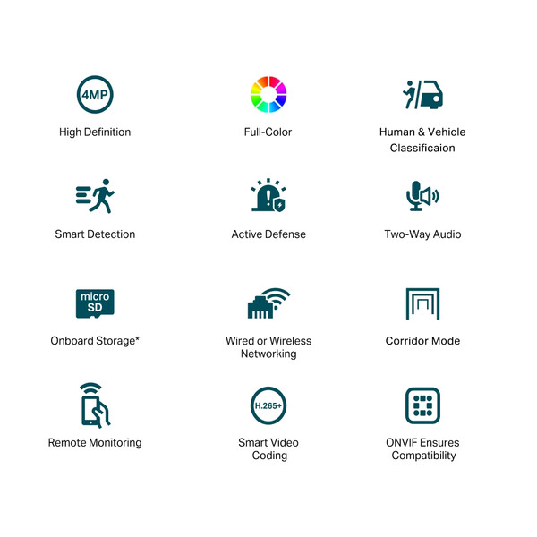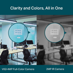 Наблюдавайте 24-часови ясни и цветни детайли дори в непрогледна нощ. Пълноцветната камера VIGI осигурява максимална резолюция от 4MP и гарантира цветно наблюдение с обектива си с голяма апертура, сензора с висока чувствителност и прикрепените допълнителни светлини.