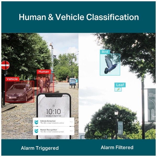 - Класификация на хора и превозни средства: Разграничава хората и превозните средства от други обекти, така че да получавате по-точни известия за събития.