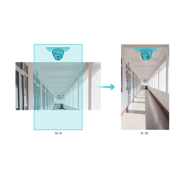 Завъртете изображението на живо и обектива на 90° едновременно по часовниковата стрелка. По този начин аспектното съотношение на вашето изображение се променя от 16:9 на 9:16, което ви помага да наблюдавате дълги и тесни области и осигурява по-естествено изживяване при гледане.