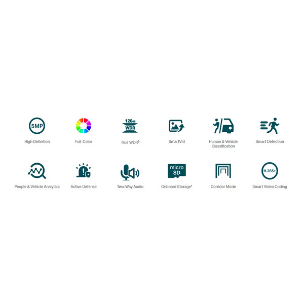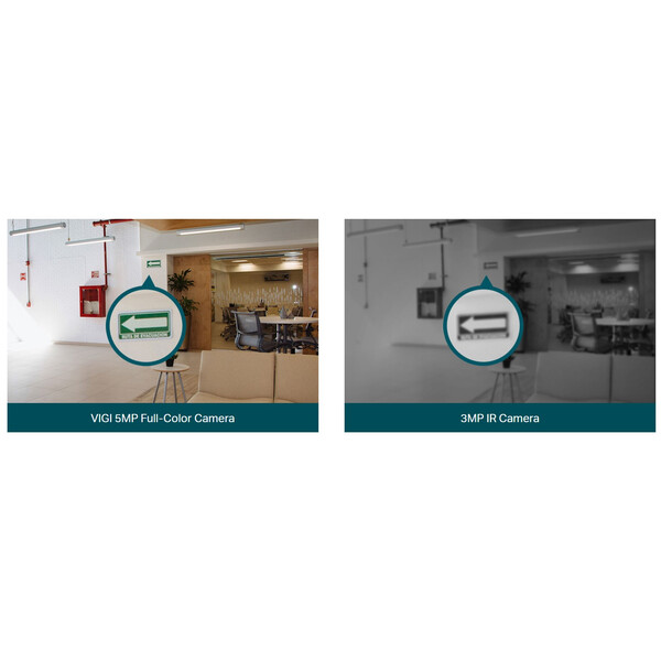 Наблюдавайте 24 часа ясни и цветни детайли дори в тъмна нощ. Пълноцветната камера на VIGI осигурява максимални 5MP резолюции и гарантира цветно наблюдение със своя обектив с голяма апертура, сензор с висока чувствителност и прикрепени допълнителни светлини.