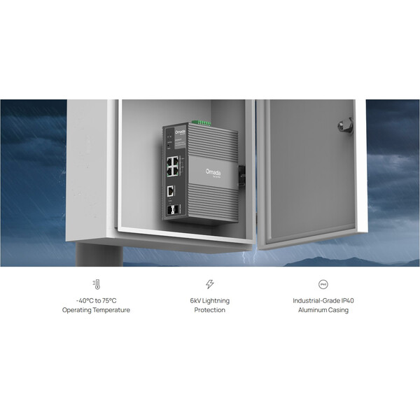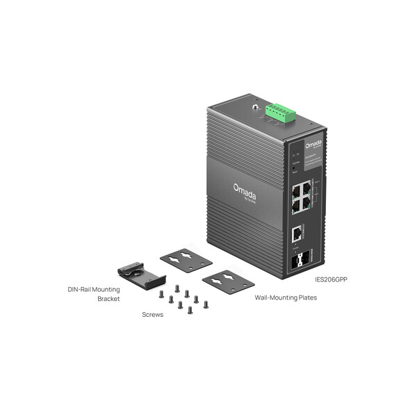 6-портов гигабитов индустриален лесно управляем комутатор TP-Link Omada IES206GPP с 3 PoE+ порта и 1 PoE++ порта