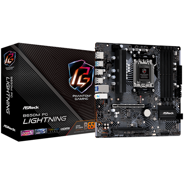 ASROCK B650 PG LIGHTNING AM5 Socket, 4x DDR5 7200+ Dual Channel RAM, PCIe 4.0 x16, 3.0 x16, 3x M.2 socket, 4x SATA 6GB, 17x USB, 7.1 Audio, 2.5GB LAN, mATX