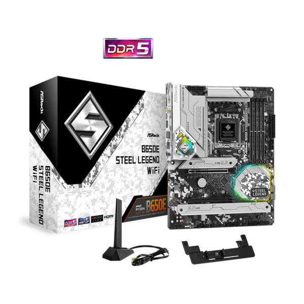 ASROCK MB Desktop B650E Steel Legend, AM5, 4x DDR5, 1x PCIe 5.0 x16, 1x PCIe 3.0 x16, 1x Blazing M.2(PCIe Gen5x4), 2x Hyper M.2(PCIe Gen4x4), 2x SATA3 6.0 Gb/s, 7.1 CH HD Audio, 1x HDMI, 1x DisplayPort, 2.5G LAN, 802.11ax Wi-Fi 6E + Bluetooth