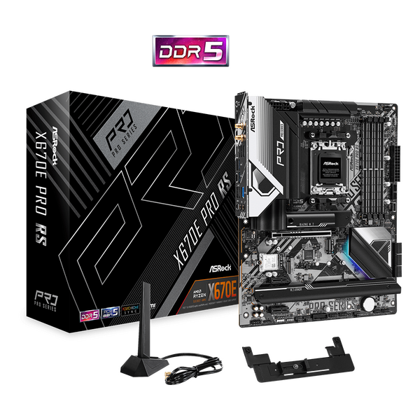 ASROCK MB Desktop X670E Pro RS, AM5, 4x DDR5, 1x PCIe 5.0 x16, 2x PCIe 4.0 x1, 6x SATA3, 3x Hyper M.2 (PCIe Gen4x4), 1x Blazing M.2(PCIe Gen5x4), 7.1 CH HD Audio, 1x HDMI, 1x DisplayPort, 2.5G LAN, Wi-Fi, BT