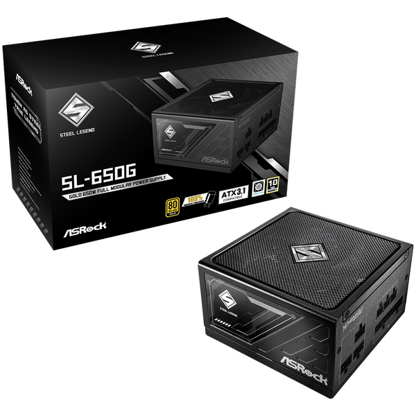 Asrock SL-650G, 650W, 80 Plus GOLD, Fully Modular PSU, Japanese Capacitors, 2x EPS 12V CPU(4+4pin), 2x PCIe (6+2pin), 3x 4-pin connectors, 6x SATA, OCP, SCP, OVP, UVP, OTP, OPP protections, 135 mm Axial Fan, ATX 3.1