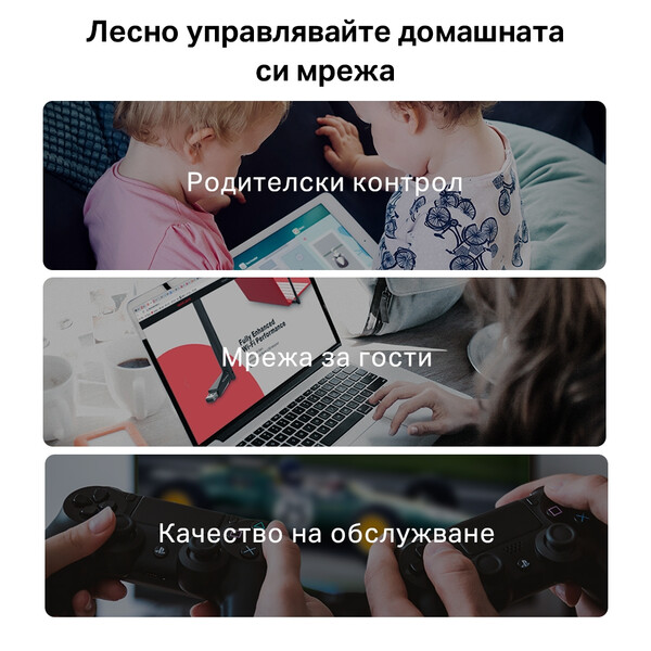 • Персонализирано управление - родителски контрол, мрежа за гости и качество на обслужването