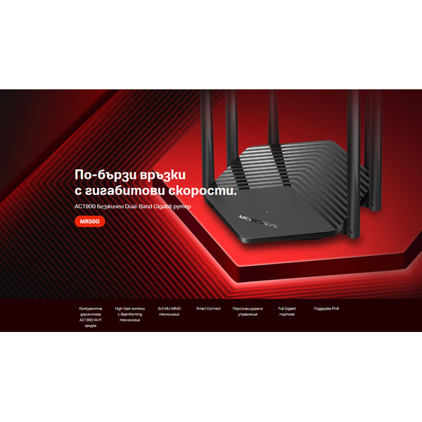 • Безжичен Dual-Band Gigabit AC1900 рутер (MR50G)