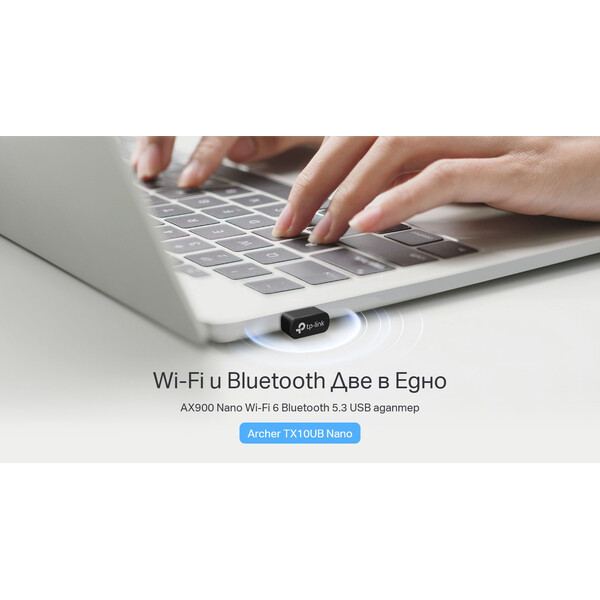 Безжичен USB 2-лентов адаптер TP-Link Archer TX10UB Nano AX900 Wi-Fi 6 Bluetooth 5.3