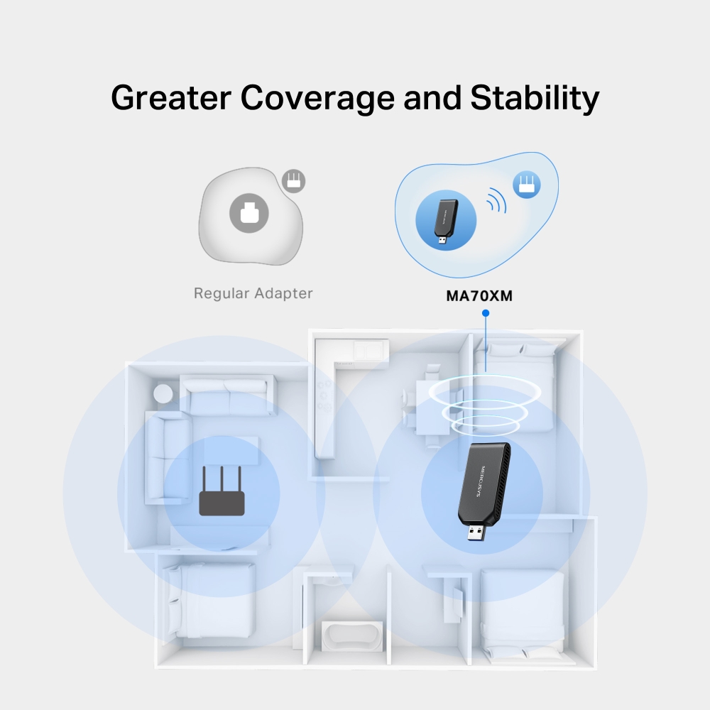 - По-високи скорости на трансфер — Комбиниран с 802.11ax Wi-Fi, USB 3.0 прави MA70XM идеален за HD стрийминг, онлайн игри и изтегляне на големи файлове.