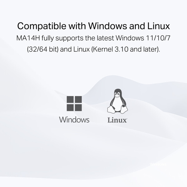 Включете MA14H с вградения драйвер и се насладете на лесна инсталация на Windows 11/10/7 или лесно изтеглете драйвера от официалния уебсайт на MERCUSYS за Linux.