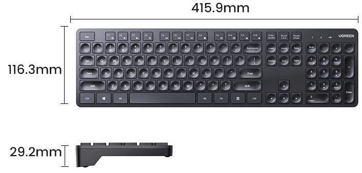 Безжичната клавиатура Ugreen KU004 е идеалното решение за потребители, които търсят удобство и свобода при работа с компютър или лаптоп. Със своя черен, стилен дизайн и безжична свързаност, тя осигурява чист и подреден работен кът без кабели. Клавиатурата използва USB адаптер за свързване, което гарантира стабилна и надеждна комуникация с устройството на разстояние.