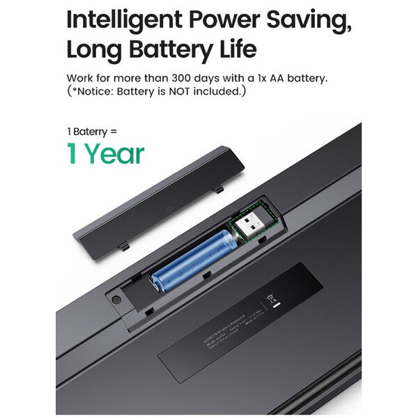 Работи с стандартни батерии тип AA (R6 / LR06), осигурявайки дълъг живот на захранването и минимални грижи за смяна. Това позволява часове на безпроблемна употреба без необходимост от постоянна подмяна на батериите. Ugreen KU004 е съвместима с широк набор от операционни системи, което я прави универсален аксесоар както за домашна, така и за офис употреба.