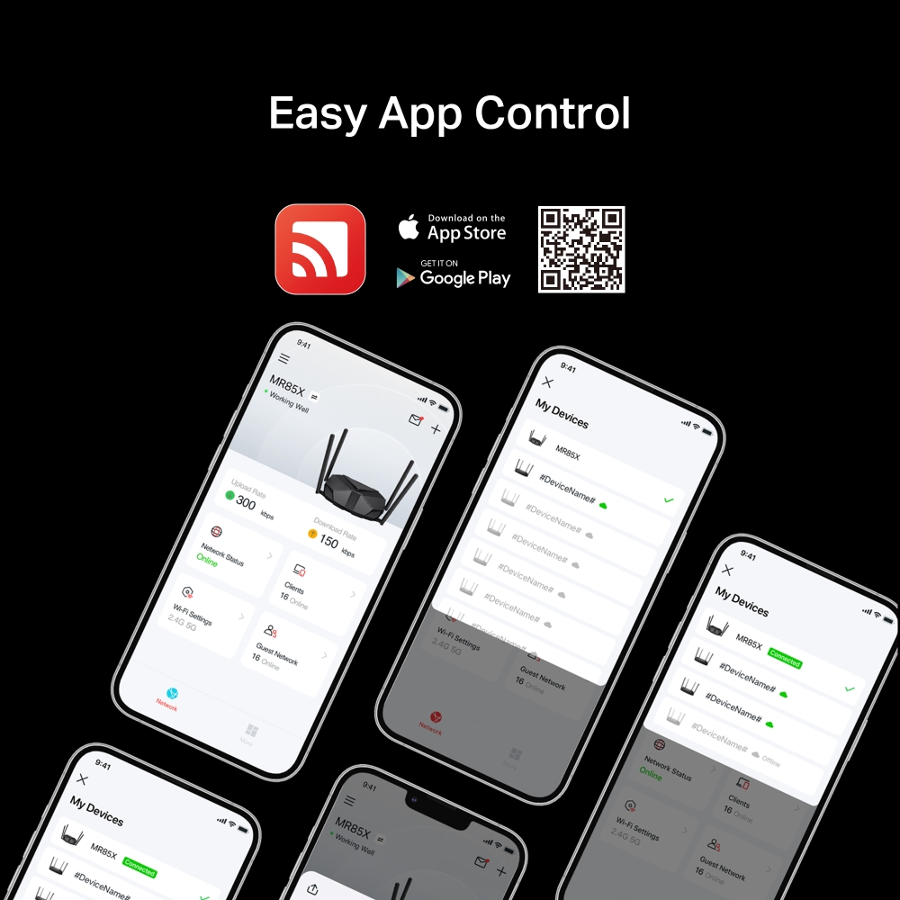 MR85X демонстрира несравнима свързаност на множество устройства, като без усилие управлява всички ваши онлайн изисквания. От семейно забавление до професионални конференции, той гарантира безпроблемно мрежово изживяване за всички, въвеждайки нова ера на интелигентен живот и ефективна дистанционна работа.