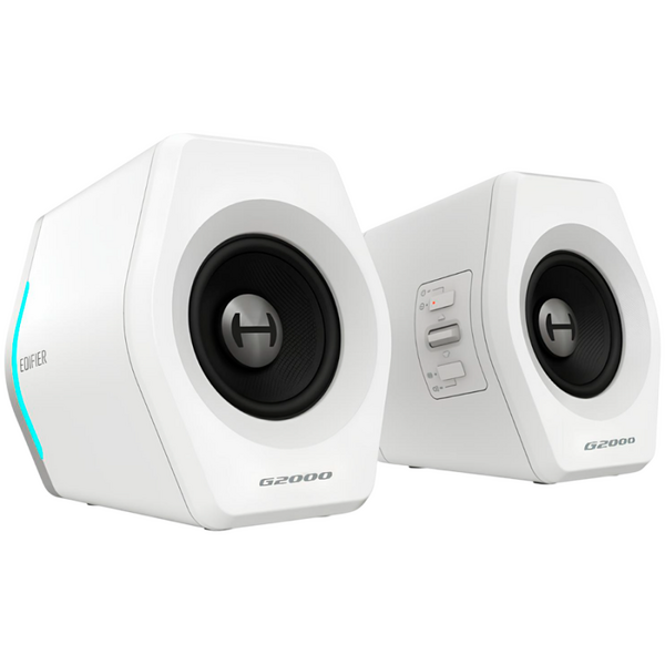 Edifier G2000 2.0 Audio System, BT V5.1, USB, AUX, 2.75-inch Drivers, RGB Lighting, 16W (RMS), White