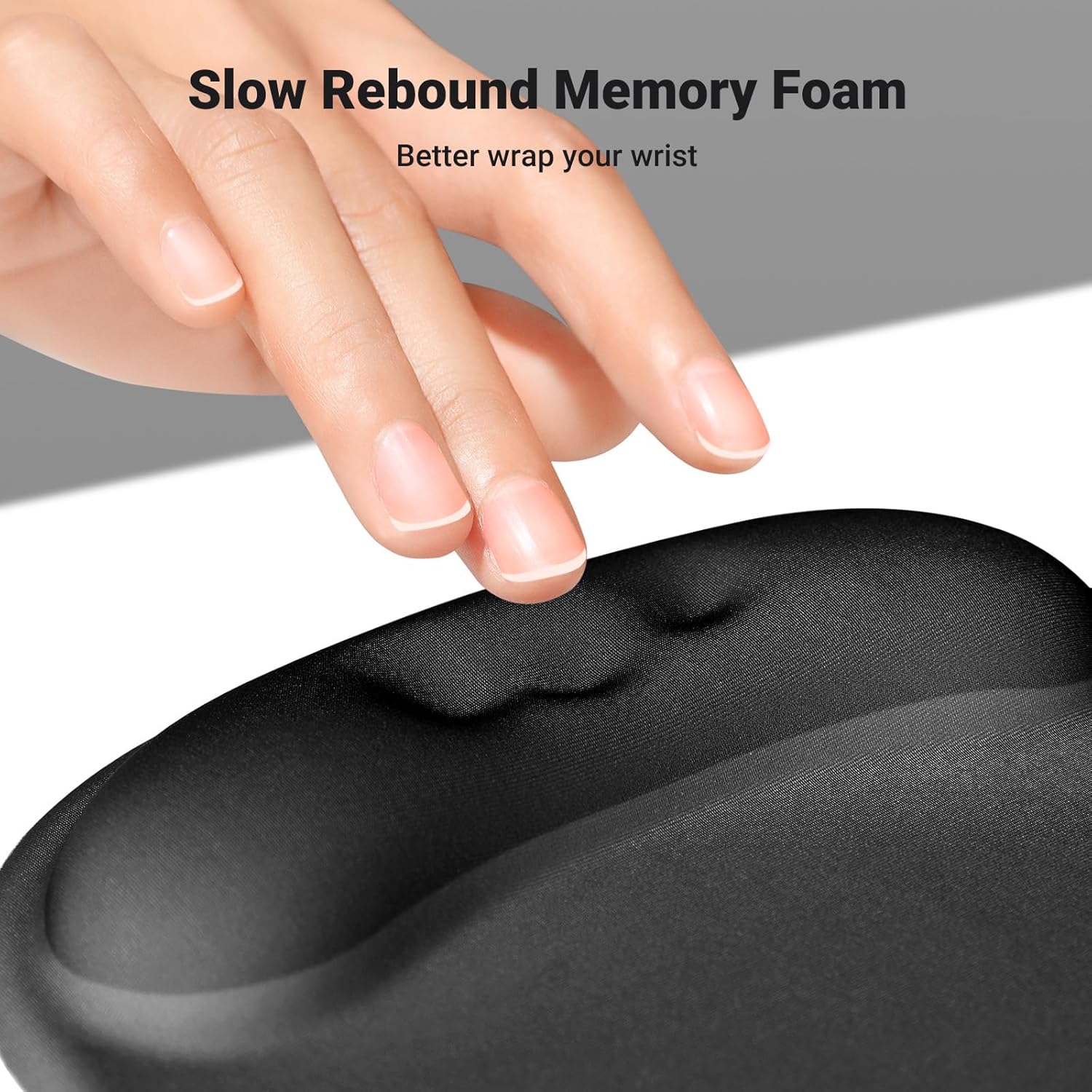 • Ергономична опора за китката: Мемори пяната поддържа китката в естествена позиция и помага за предотвратяване на синдром на карпалния тунел (CTS) и травми от повтарящи се движения (RSI).