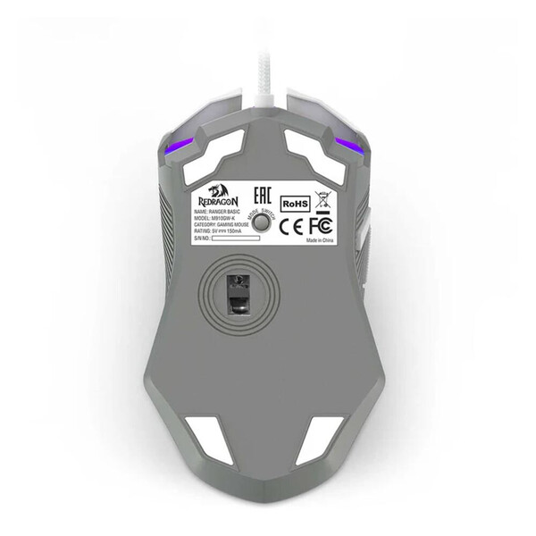 Redragon Ranger Basic е жична бяла геймърска мишка с RGB подсветка и високопроизводителен Pixart PAW3104 оптичен сензор. Поддържа резолюция до 8000 DPI, ускорение от 15G и проследяване със скорост 45 IPS. Оборудвана е с издръжливи микропревключватели Omron с живот от 20 милиона кликвания. Мишката има 9 бутона, като 8 от тях са програмируеми.