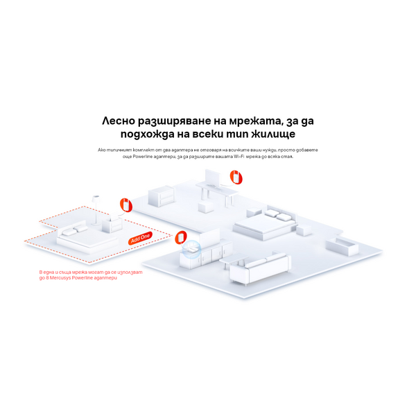 - Лесно разширяване—Разширете покритието просто като добавите още Powerline адаптери