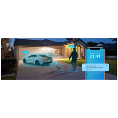 - Безплатно AI откриване: Използвайки AI технология, камерата предоставя предупреждения, докато идентифицира хора, домашни любимци и превозни средства, като намалява фалшивите сигнали и ненужните известия.