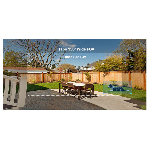 Tapo C425 разширява вашето визуално покритие със 150° супершироко поле на видимост, което гарантира, че можете да наблюдавате по-важни зони.