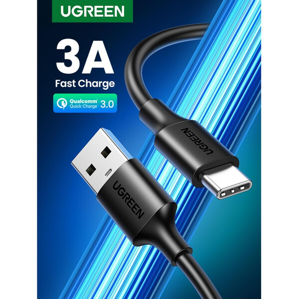 Кабел Ugreen - US287 (60116) USB-A / USB-C – 3A, 1м - черен