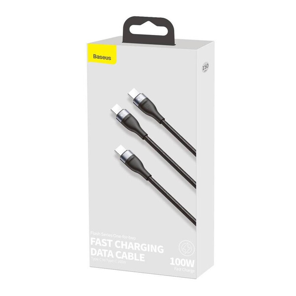 Кабел за бързо зареждане Baseus Flash Series 2в1 Type-C към 2х Type-C, 1.5m, черен CA1T2-C01