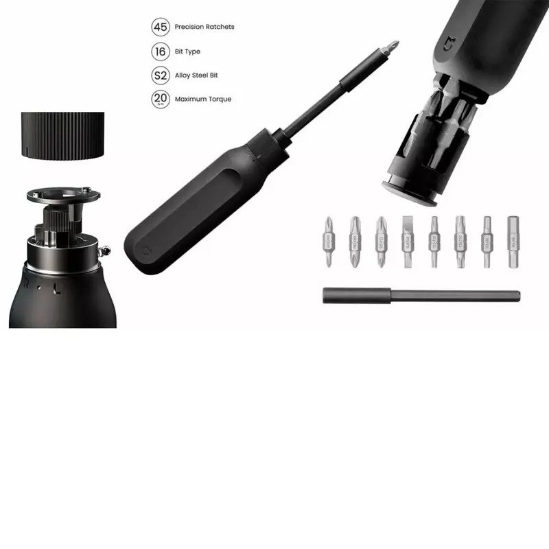 Мултифункционална тресчоткова отвертка с 16 сменяеми накрайника, изработена от висококачествена стомана за ремонт на електроника и домакински уреди.
