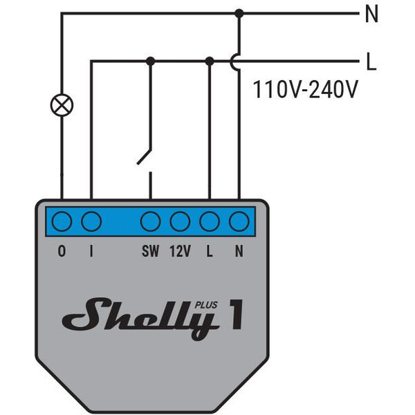 - Shelly Plus 1 е едноканално реле за управление на товари до 16А.