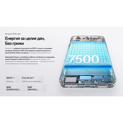 Oppo Find X9 Pro е оборудван с огромна 7500 mAh батерия, която обещава впечатляваща автономност, и поддържа 80W SUPERVOOC бързо зареждане за ускорено възстановяване на енергия. Смартфонът предлага също Wi-Fi 7, Bluetooth 6.0, NFC, USB-C 3.2, GPS и сертификация IP68/IP69 за защита срещу прах и вода.