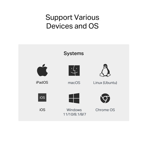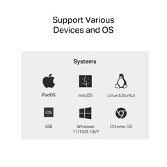 • Windows 11/10/8.1/8/7 MacOS iPadOS Chrome OS Linux OS iOS