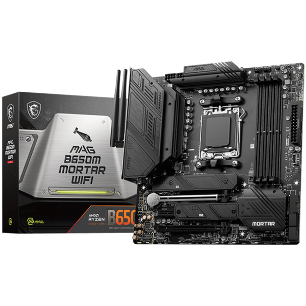 MSI MAG B650M MORTAR WIFI, mATX, Socket AM5, DDR5 6400(OC)MHz, 2x PCIe x16 slots, 2x M.2 slots, 1x HDMI, 1x DP, 1x USB 3.2 Gen2x2, 3x USB 3.2 Gen 2, 4x USB 2.0 ports, Type-C, 7.1 HD Audio, 2.5Gbps LAN
