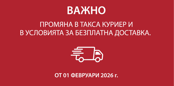 30.01.2026Уважаеми клиенти и партньори, Бихме искали да Ви информираме, че поради повишените цени на куриерските услуги, считано от 01.02.2026 г. се налага да променим такса куриер, както и условията...Научи повече -