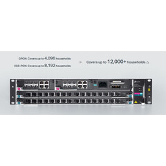 - 32× PON порта: Две сервизни платки поддържат до 32 GPON порта или 32× XGS-PON и GPON комбинирани порта.