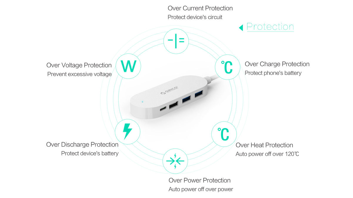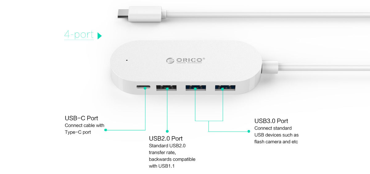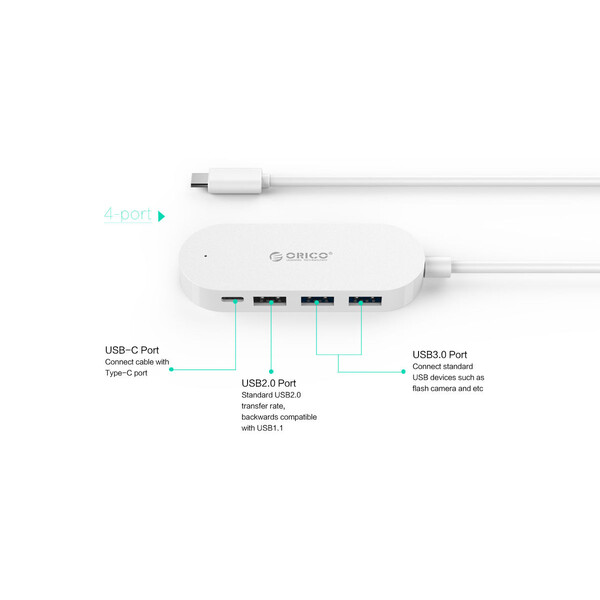 Orico Type-C хъб с 3х USB Type-A порта и 1 USB Type-C порт бял