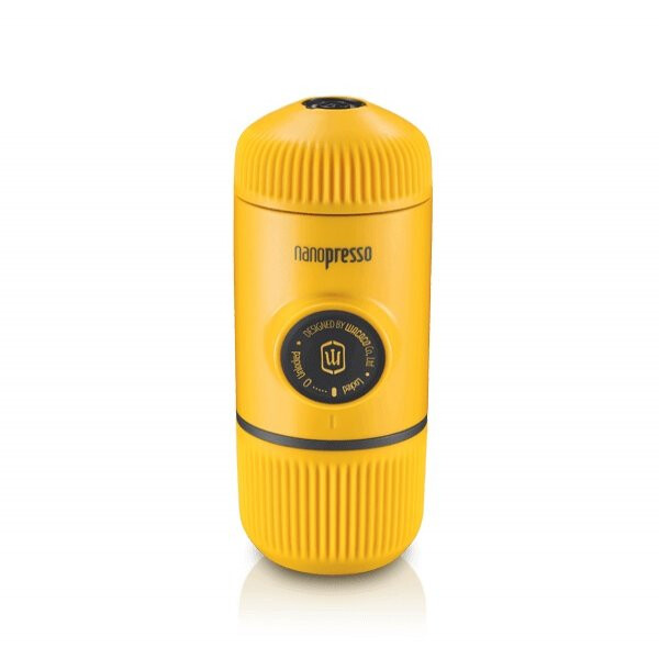 Wacaco Nanopresso Yellow Patrol. Цвят на продукта: Жълт, Материали: PA66, PA6T, PP, неръждаема стомана, силикон, Вид на кафето: Смляно, Максимално работно налягане: 18 бар. Размер: 62 х 71 х 156 мм, Капацитет: 80 мл, Тегло: 336 г