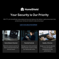 С TP-Link HomeShield се насладете на разширени функции за сигурност, които осигуряват безопасна среда, защитаваща данните и поверителността на вашето семейство и мрежа.