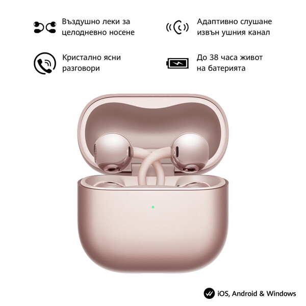 Въздушно леки за целодневно носене. Адаптивно слушане извън ушния канал. Кристално ясни разговори. Насладете се на дълготраен комфорт с HUAWEI FreeClip 2. Тези слушалки са с 25% по-мек C-образен дизайн, изработен от нежен към кожата течен силикон и сплав от мемори пяна. Всяка слушалка е с тегло от само 5.1 г за почти безтегловно усещане. Акустична сфера - Може да изглежда малка, но със сигурност е мощна, благодарение на високоговорителя с двойна диафрагма. Усъвършенстваната кутийка за зареждане е с удобен захват, защото е със 17% по-тясна и с 14% по-лека, а слушалките вътре прилягат стегнато една към друга. HUAWEI FreeClip 2 са изработени посредством микрометрично формоване, което осигурява устойчива на петна повърхност с текстура от деним с подчертано изискано усещане. Насладете се на кристално ясни разговори и превъзходен звук, подсилен от процесора NPU AI с 10 пъти по-голяма изчислителна мощност. От тътена на метрото до суматохата в оживен ресторант, тези слушалки се грижат за Вас. Те автоматично регулират силата на звука, за да го поддържат ясен и отчетлив. С HUAWEI FreeClip 2 всеки разговор или аудиокнига звучи по-ясно, защото технологията на слушалките подобрява яснотата на гласа и се адаптира към обкръжението Ви за по-добро аудио изживяване. Докоснете и плъзнете, за да прегледате песните си; кимнете или поклатете глава, за да отговорите или отхвърлите обаждане. Наистина е толкова лесно!