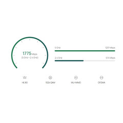 - Безпроблемен 1.8Gbps Wi-Fi 6 скорости: 574 Mbps на 2.4 GHz и 1201 Mbps на 5 GHz.