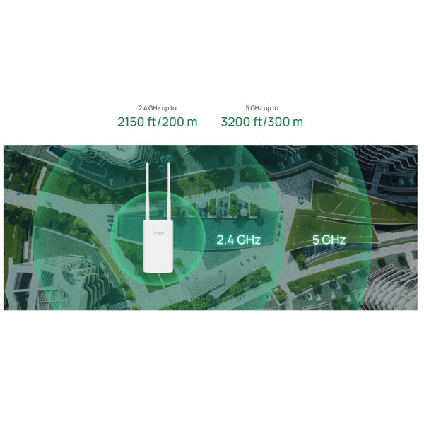 2× външни антени с високочестотни усилватели използват Wi-Fi 6 технология, за да осигурят силно и широко безжично покритие за различни външни среди.*