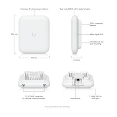 - 5 GHz: Вътрешна насочена: 12.5 dBi / Външна всенасочена: 4 dBi