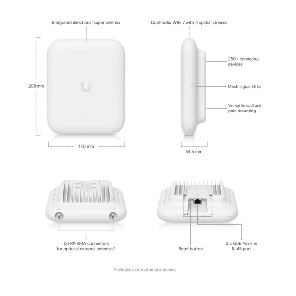 Всесезонна WiFi 7 точка за достъп с 4 пространствени потока, вградена насочена супер антена и разнообразни възможности за монтаж.