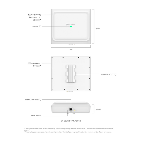 - Лесна и бърза настройка: Монтаж на стена/стълб; Omada SDN за настройка с едно кликване