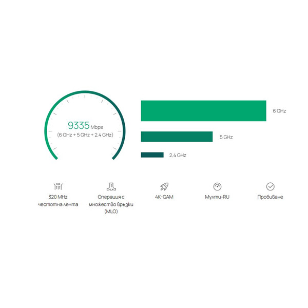 - Трибандов шестпоточен WiFi 7 на открито: до 9,3 Gbps.