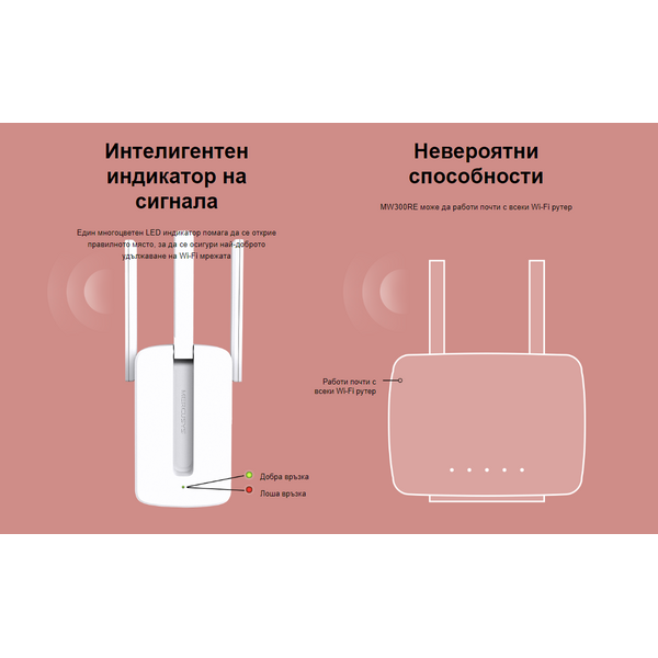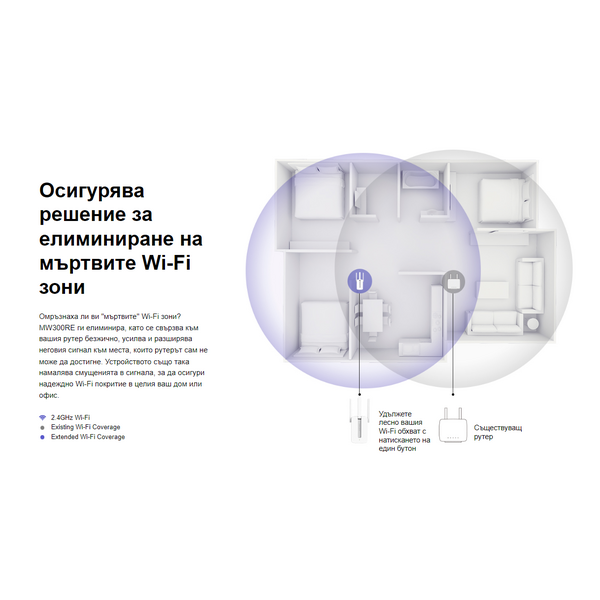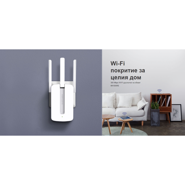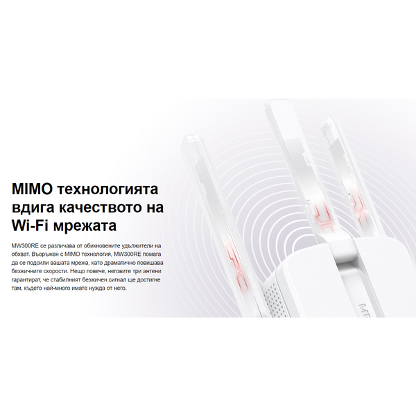 • 300 Mbps Wi-Fi удължител на обхват MW300RE