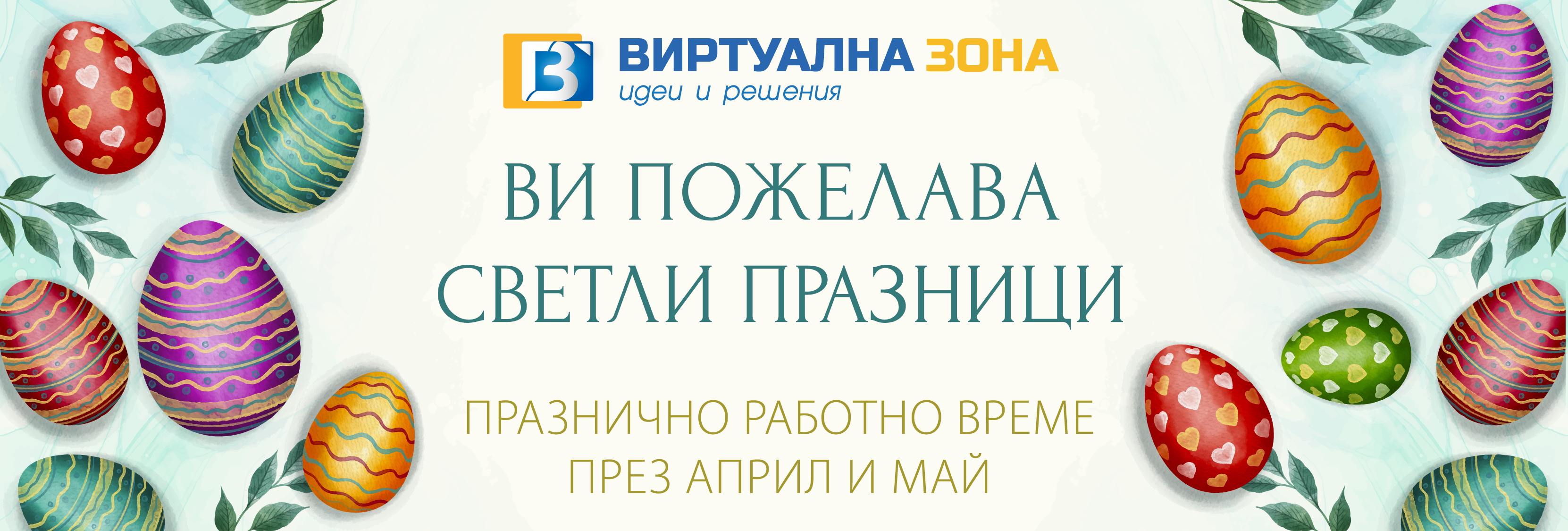 Във връзка с предстоящите Великденски и Майски празници Ви информираме за работното време на Виртуална Зона:
