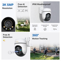 - 360° всестранна защита - Насладете се на 360° хоризонтален и 130° вертикален изглед с проследяване на движението, за да елиминирате слепите зони. Активирайте режим на патрулиране, за да се придвижвате между множество персонализирани точки.