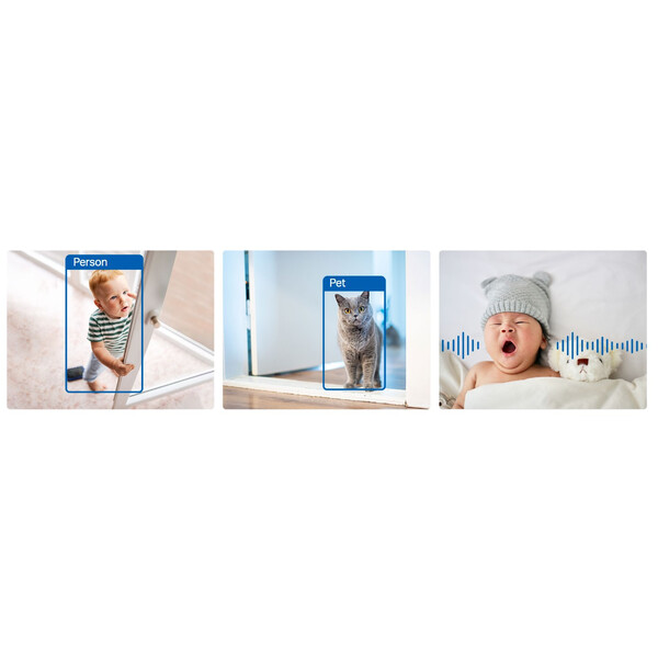 Интелигентният изкуствен интелект идентифицира хора, домашни любимци и превозни средства, като същевременно разпознава бебешки плач и други звуци, като уведомява потребителите при необходимост.