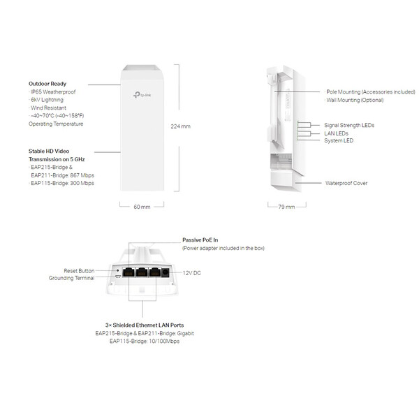 - EAP215-Bridge & EAP211-Bridge: Gigabit EAP115-Bridge: 0/100Mbps